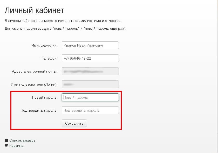 Для того, чтобы изменить пароль, перейдите в Личный кабинет, а затем укажите новый пароль и продублируйте его в полях "Новый пароль" и "Подтвердите пароль". После внесения изменений, нажмите на кнопку "Сохранить".